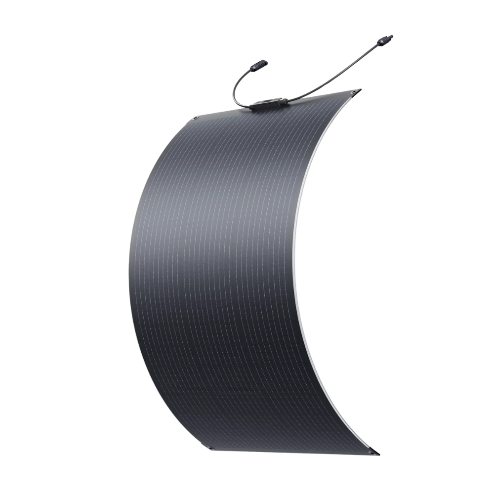 The BLUETTI PV100 FX is a lightweight flexible solar panel designed for portable solar charging and mobile energy setups. With a compact design and flexible construction, it can be mounted or positioned on curved surfaces such as RV roofs, boats, or outdoor equipment where traditional rigid panels may not fit.