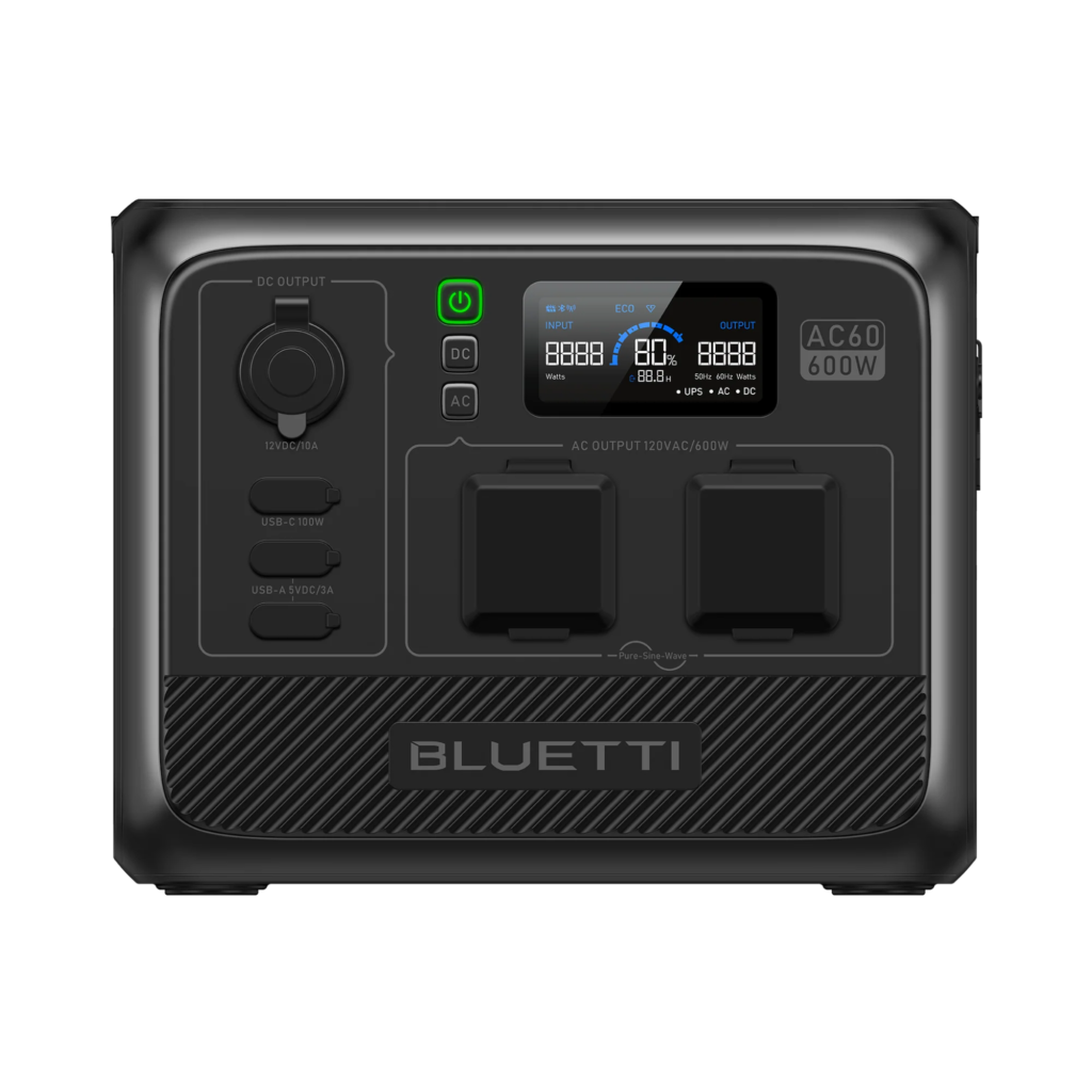 The BLUETTI AC60 is a compact portable power station designed for camping, travel, and outdoor electricity needs. With moderate battery capacity and reliable AC output, it provides power for essential electronics and small appliances during outdoor activities or temporary power interruptions.