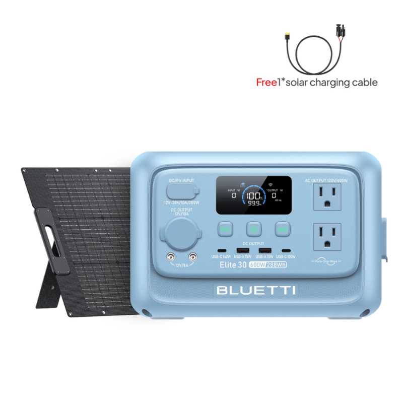 BLUETTI Elite 30 V2 Solar Generator (Glacier Blue + 100W Solar Panel)
